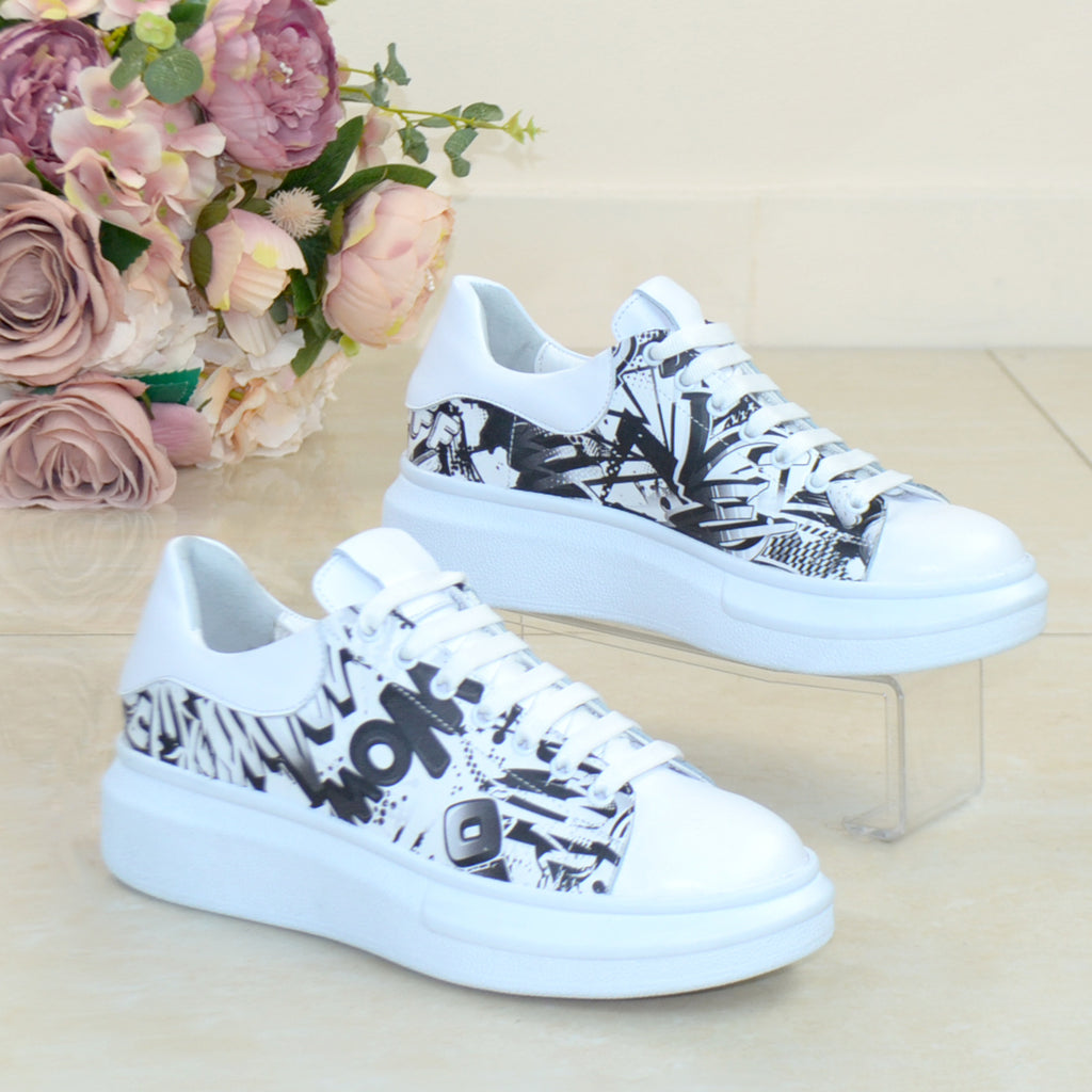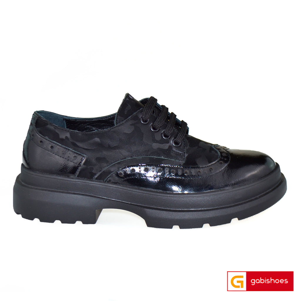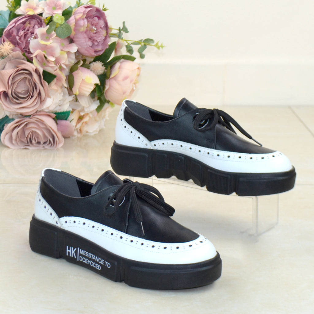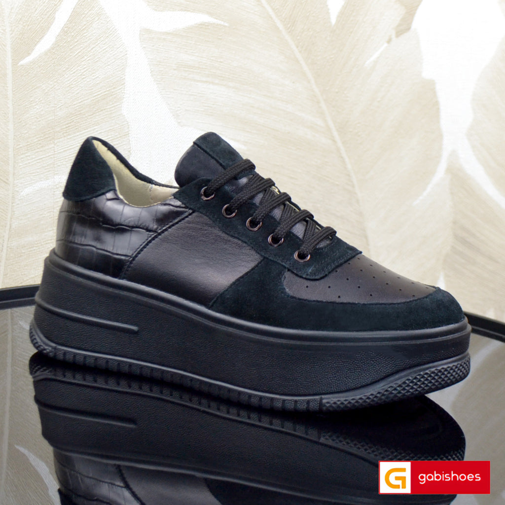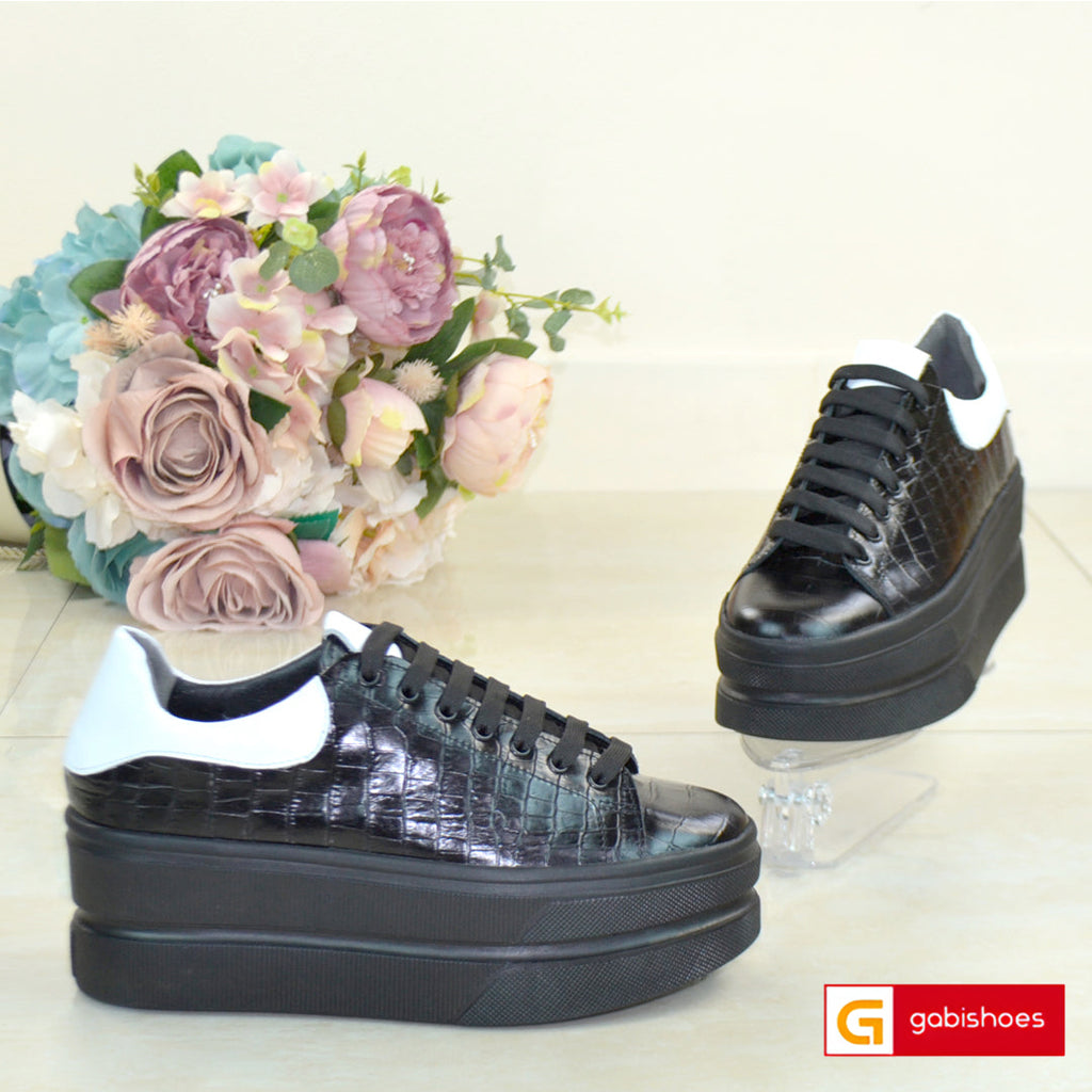 Pantofi Piele Naturala Negru Croco cu Alb Lorena