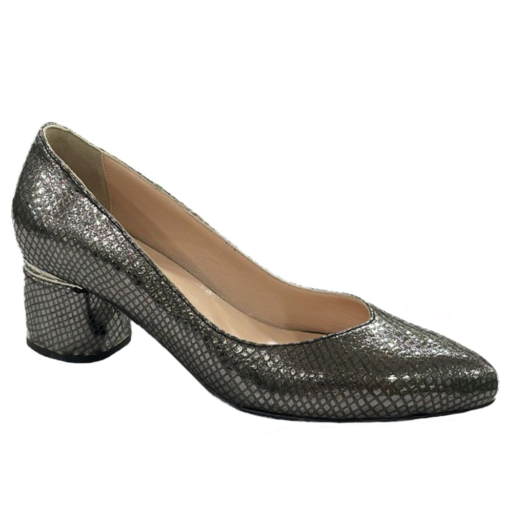 Pantofi Office Dama Piele Naturala Argintie Camellia 5069-6