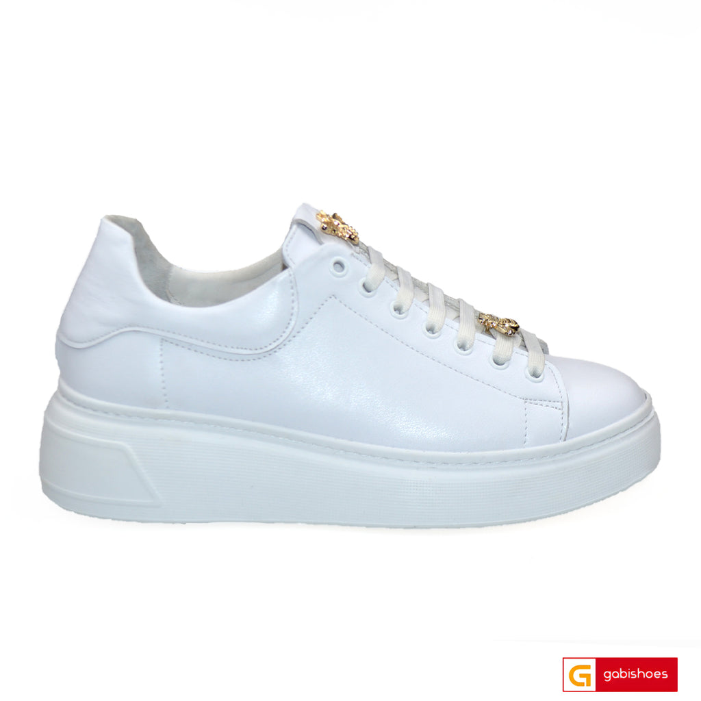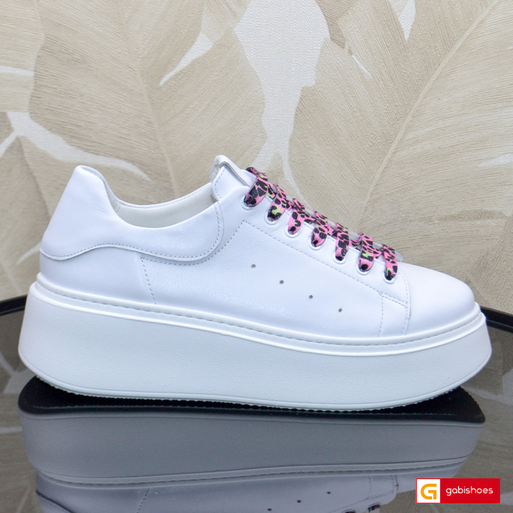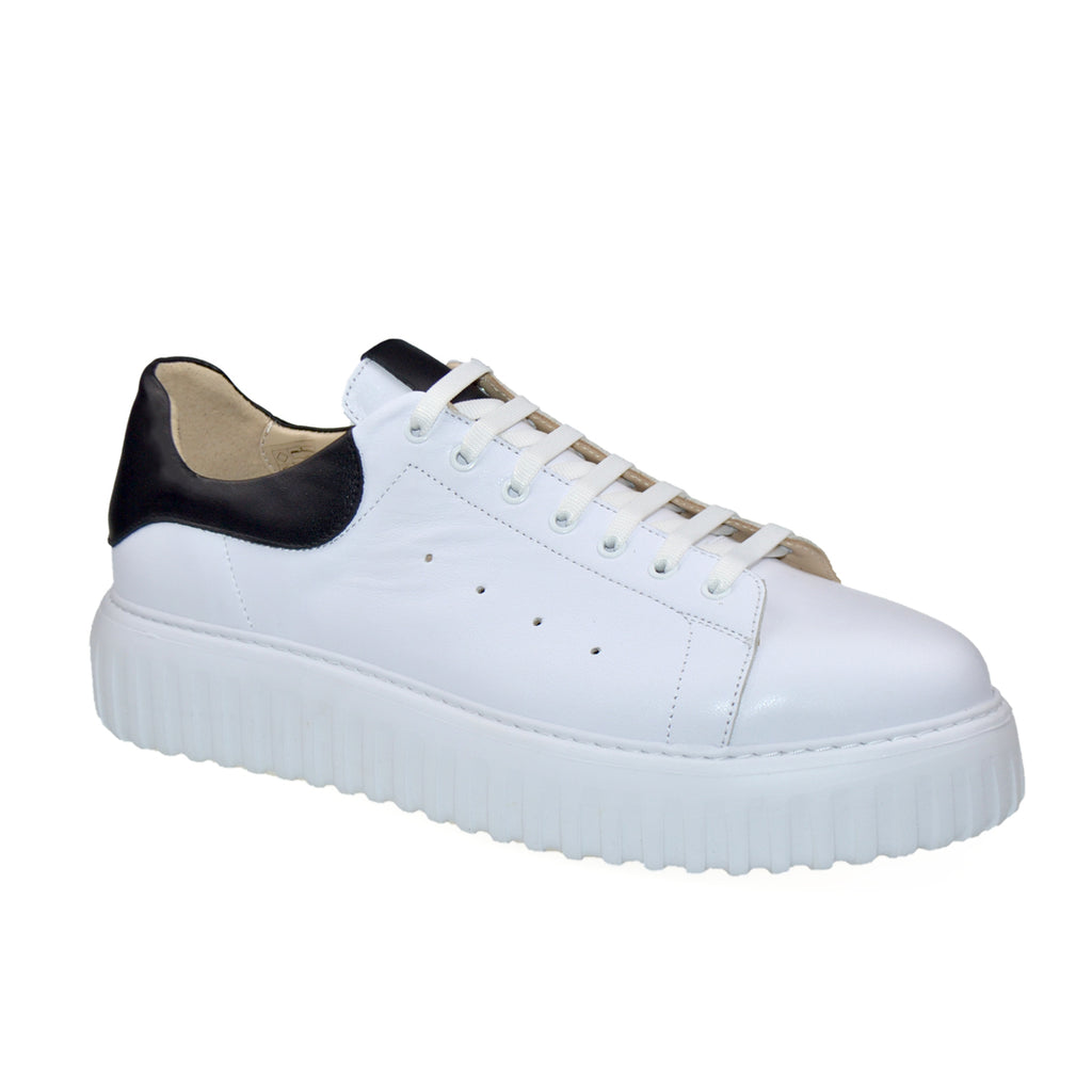 Pantofi Sport Barbat Piele Naturala Alba cu Negru 3496-5