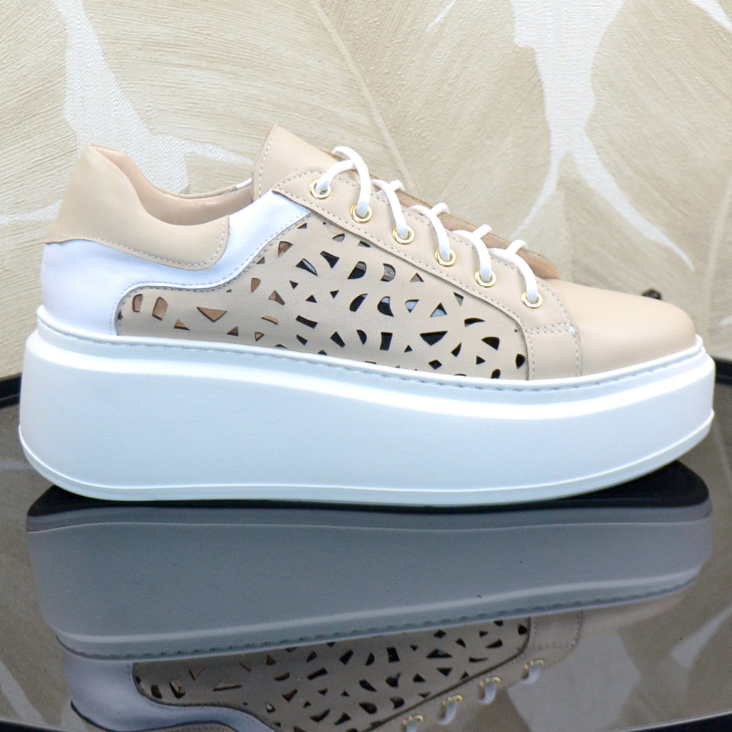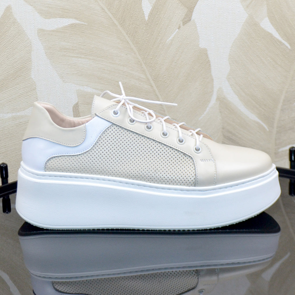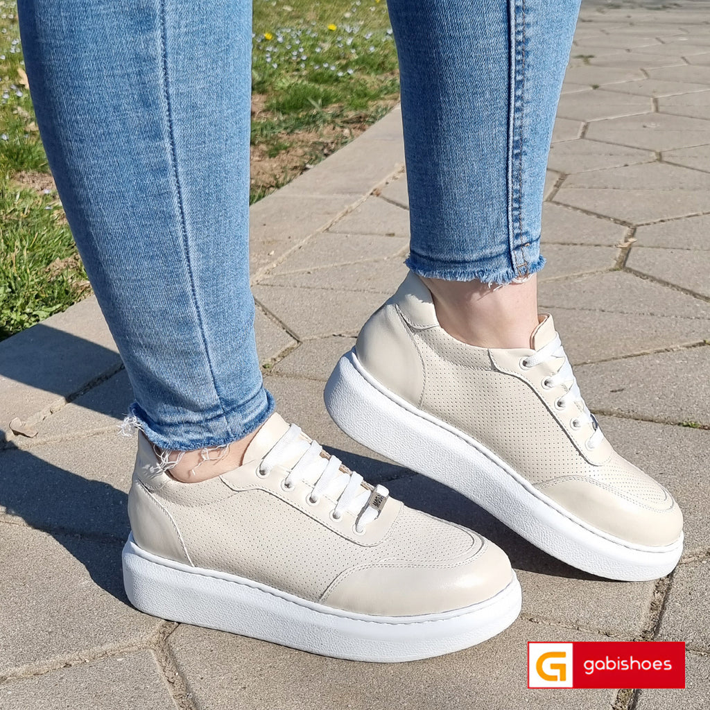 Pantofi Sport Piele Naturala Bej cu Alb Gabinna 3363-1