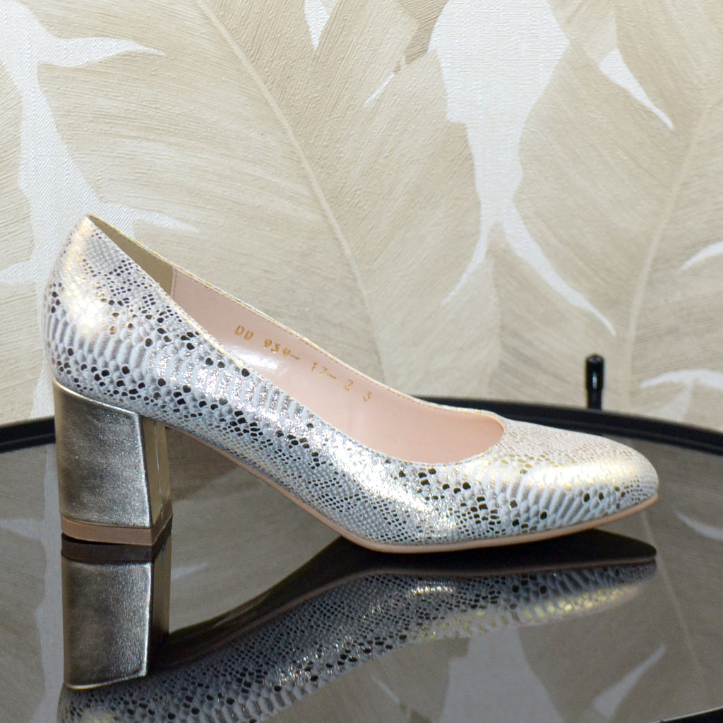 Pantofi Office Piele Naturala Bej cu Auriu Gabriela 939-17