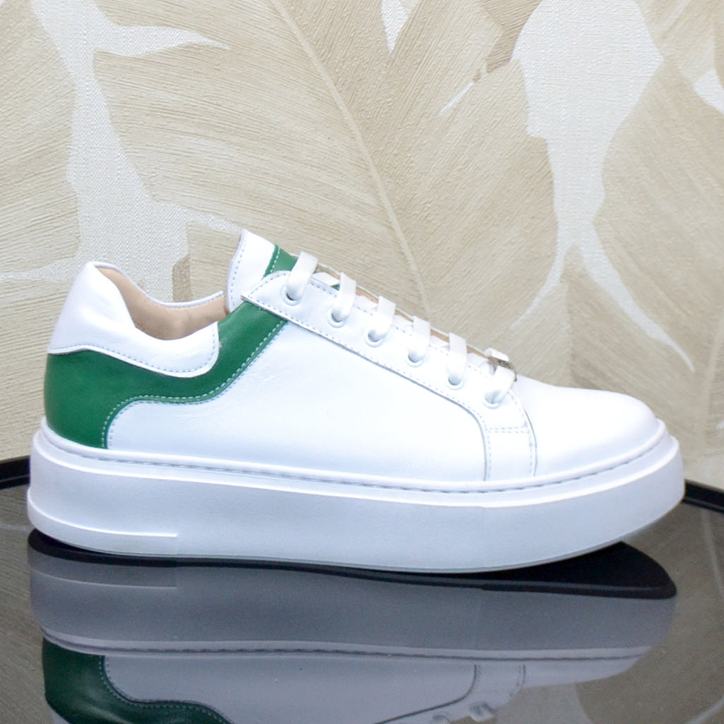 Pantofi Sport Piele Naturala Alb cu Verde Lorena 3234-2