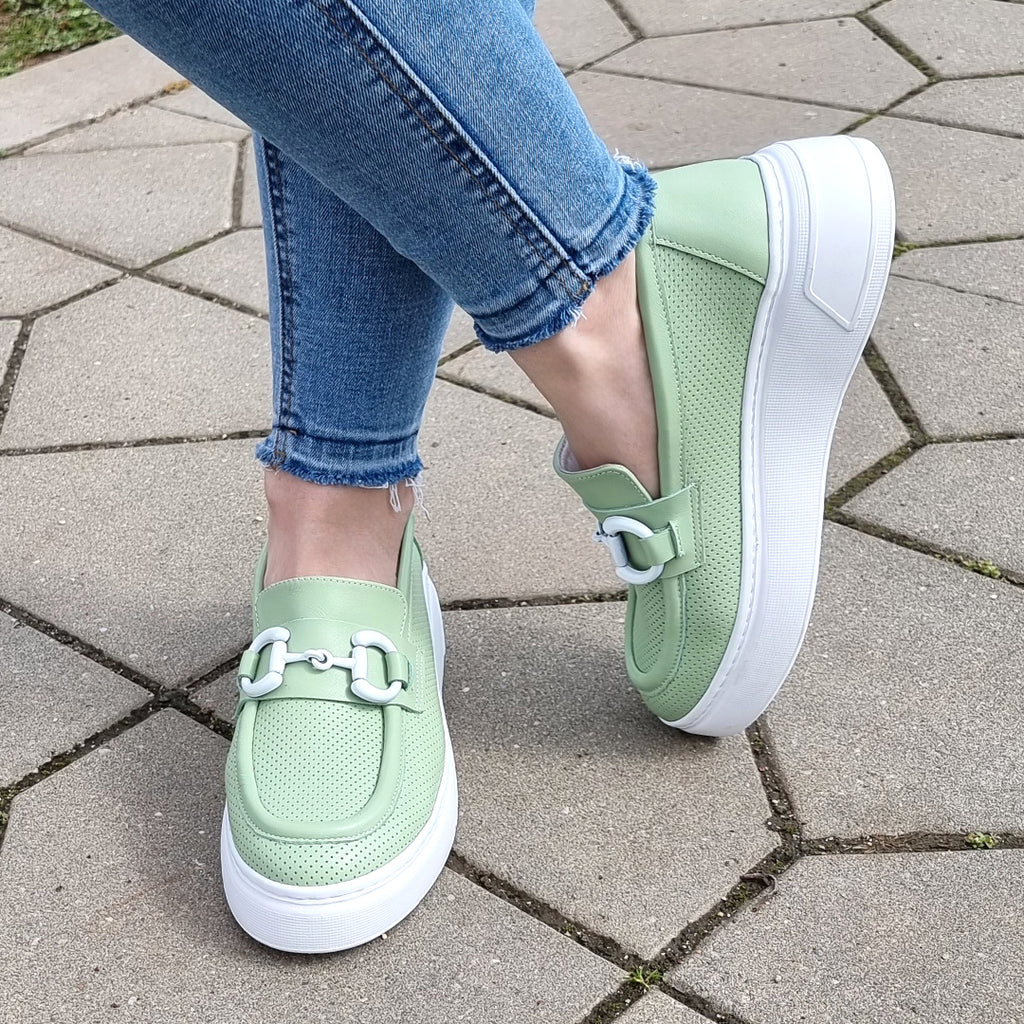 Pantofi Casual Dama Piele Naturala Verde Lorena 3252-1