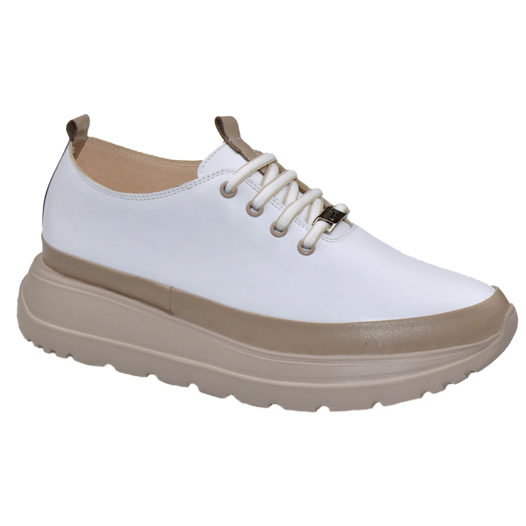 Pantofi Sport Piele Naturala Alb cu Bej Lorena 3343-1 -2024