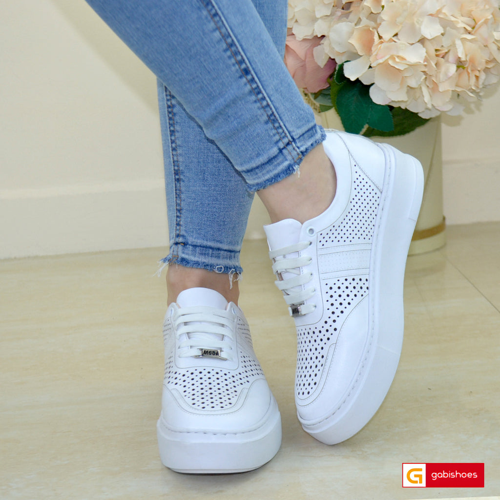 Pantofi Sport Piele Naturala Alba Gabinna 3285-2