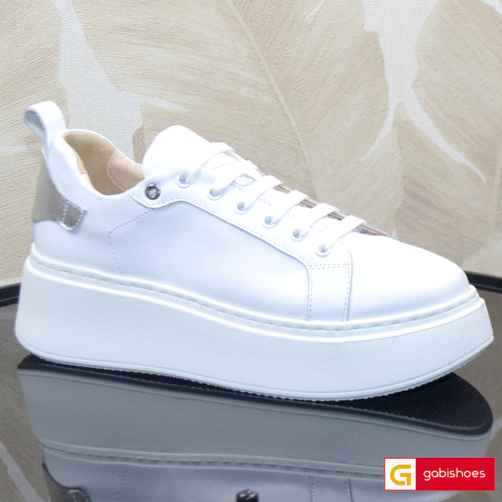 Pantofi Sport Piele Naturala Alba cu Argintiu Lorena 3067-1
