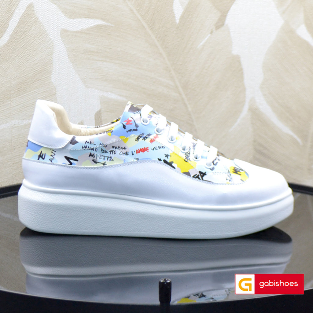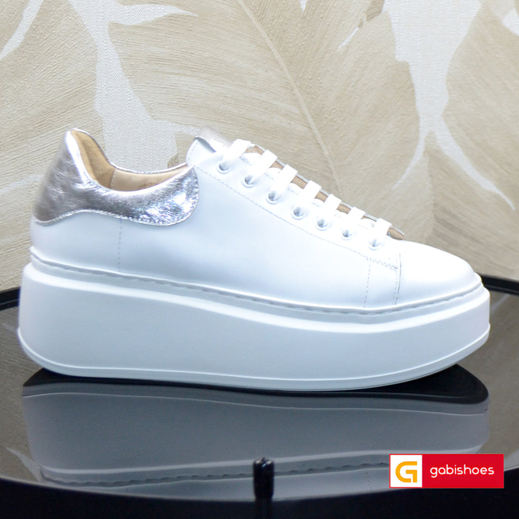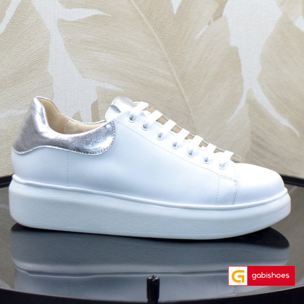 Sneakers Piele Naturala Alba cu Argintiu Tokio 3044-1