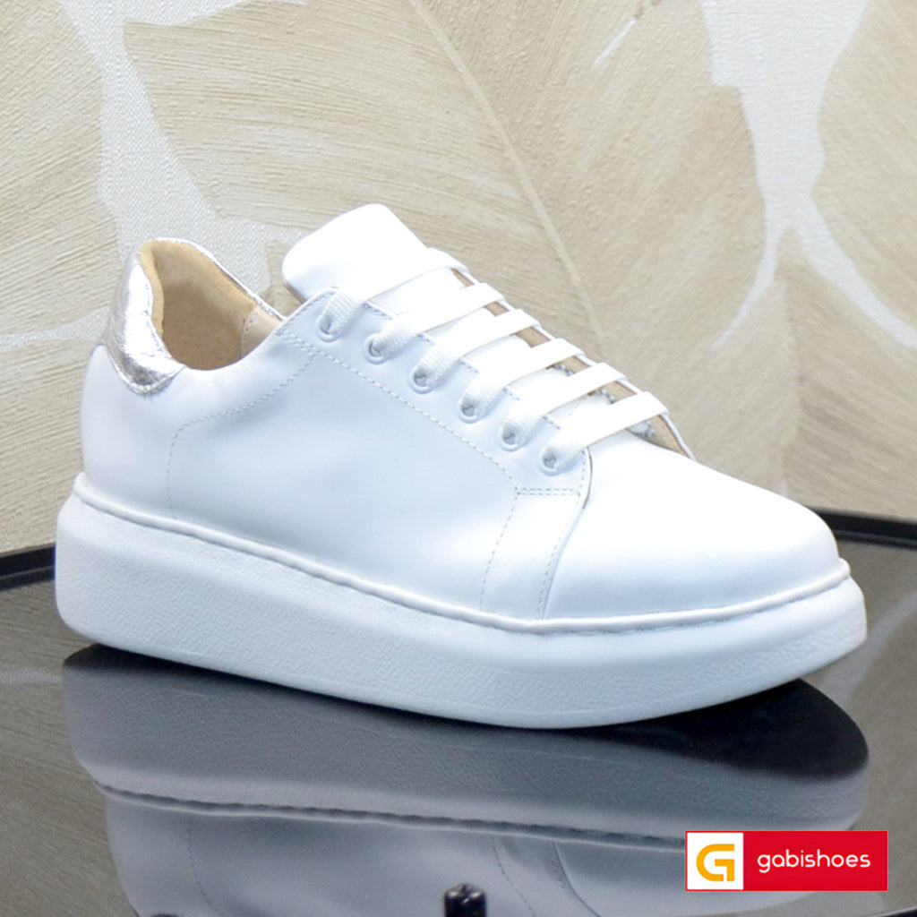 Pantofi Sport Piele Naturala Alba cu Argintiu Gabinna 3052-1