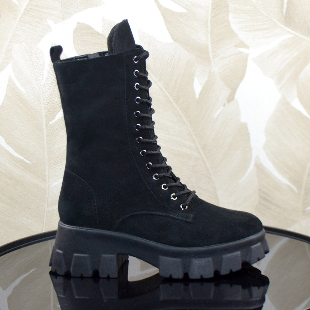 Cizme Dama Piele Naturala Intoarsa Neagra Lorena 3038-1