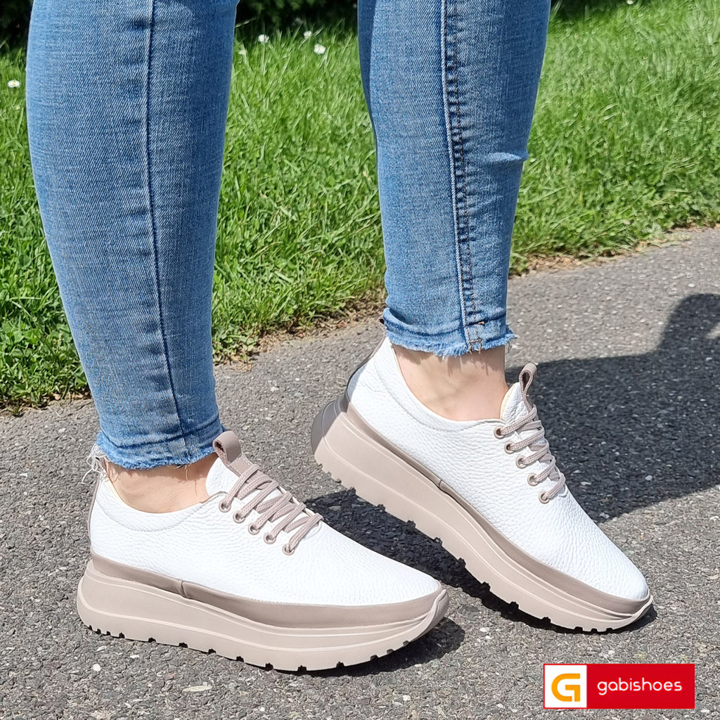 Pantofi Sport Piele Naturala Alb cu Taupe Gabinna 2026-1