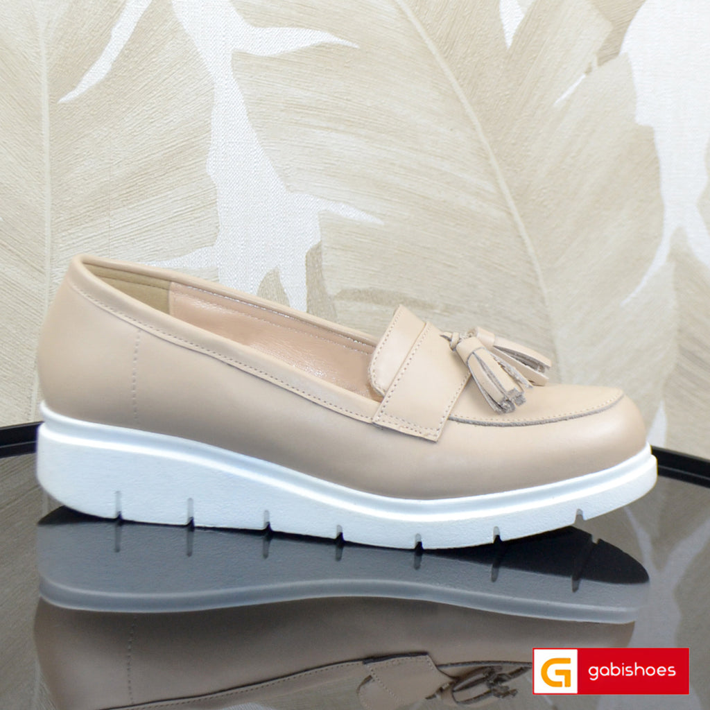 Pantofi Casual Dama Piele Bej Naturala 1725-3