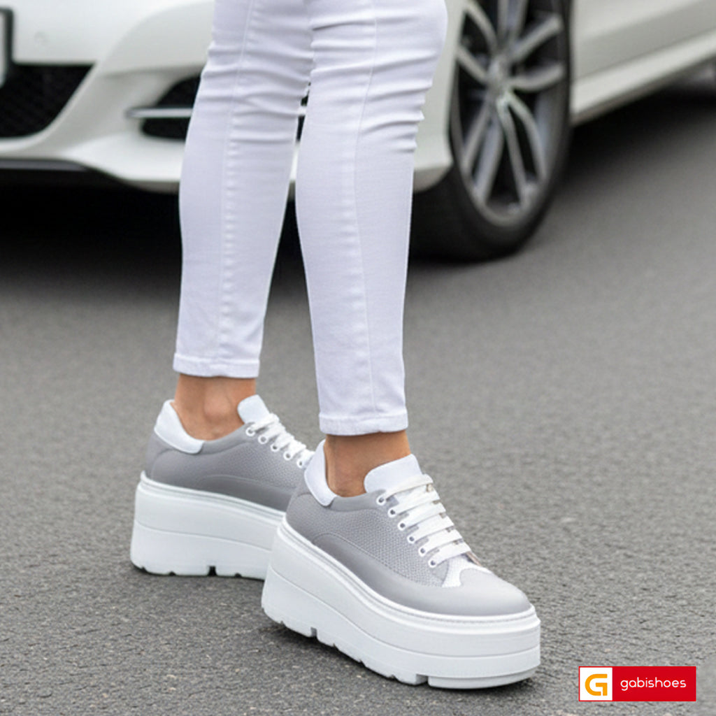 Pantofi Sport Piele Naturala Gri cu Alb Gabinna 2016-1