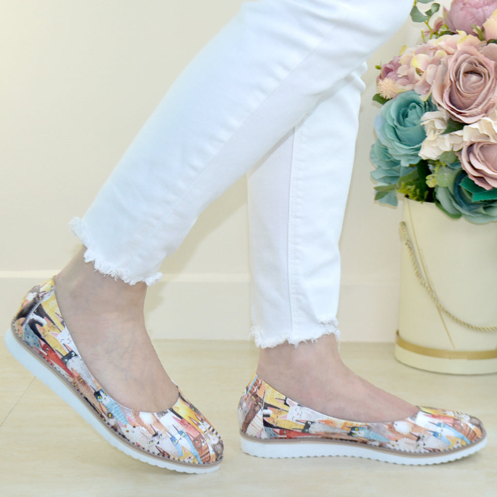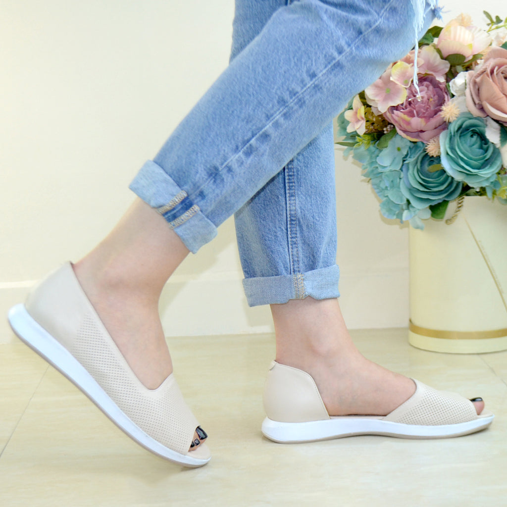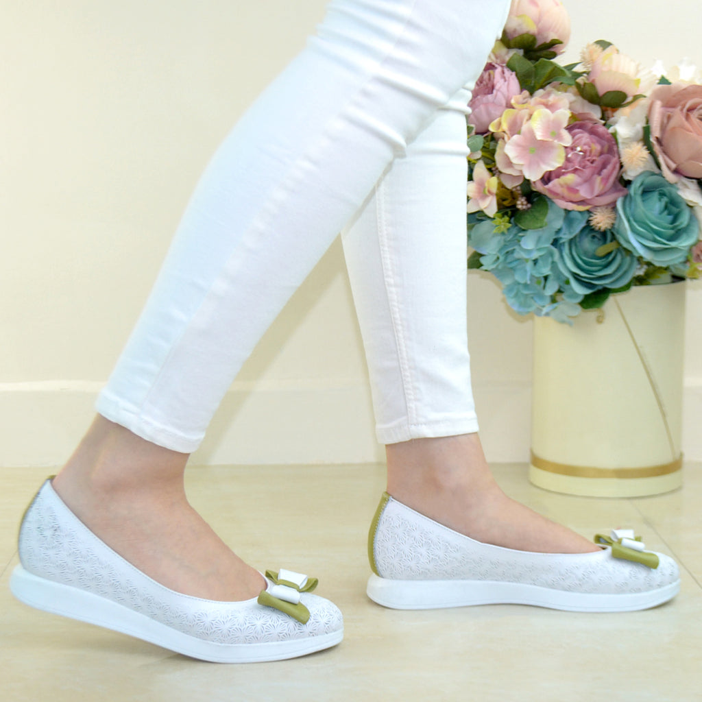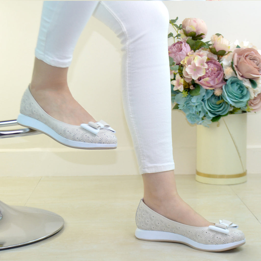 Balerini Piele Naturala BEJ CU ALB Gabriela