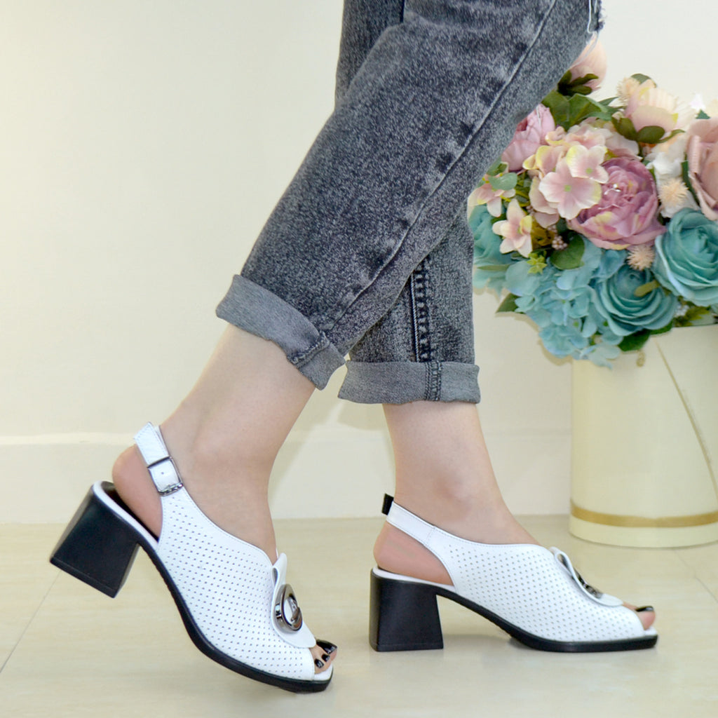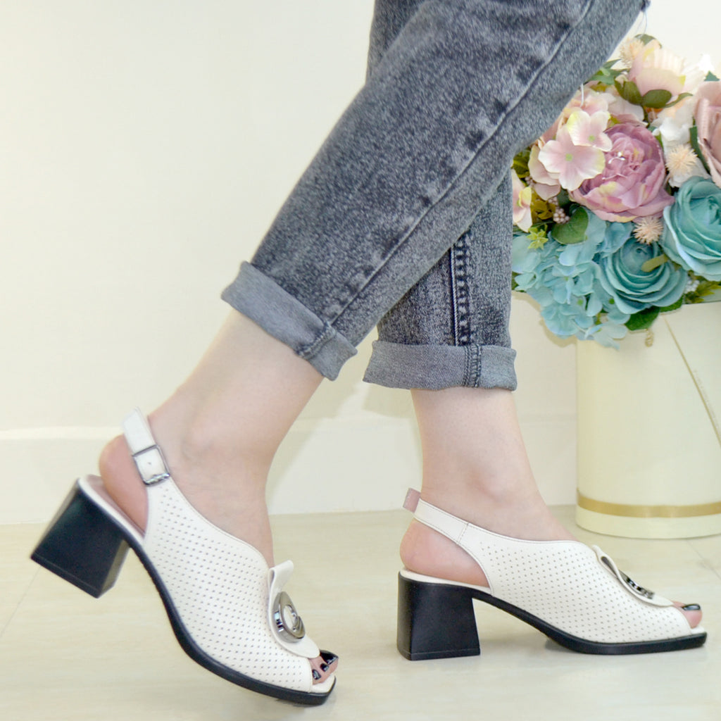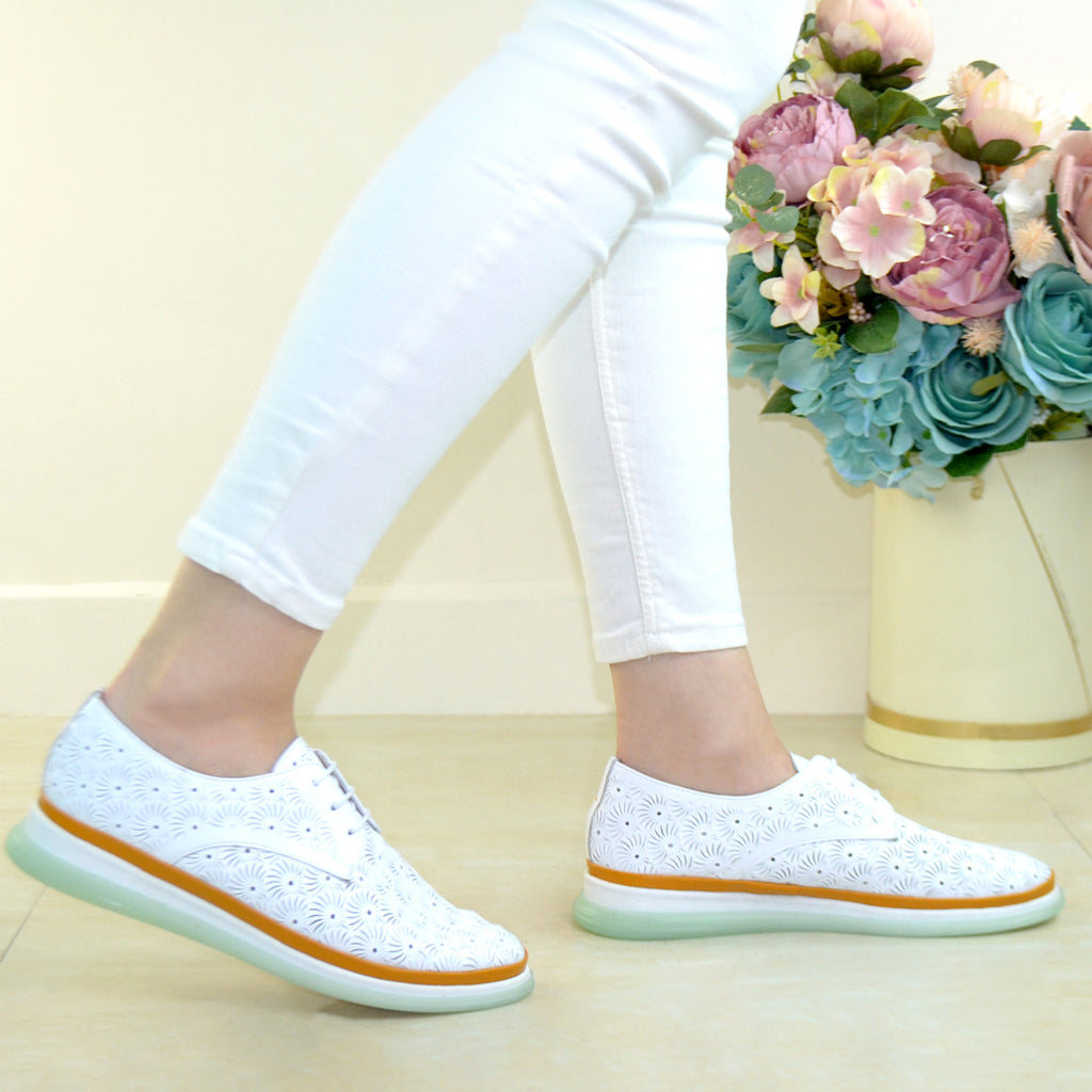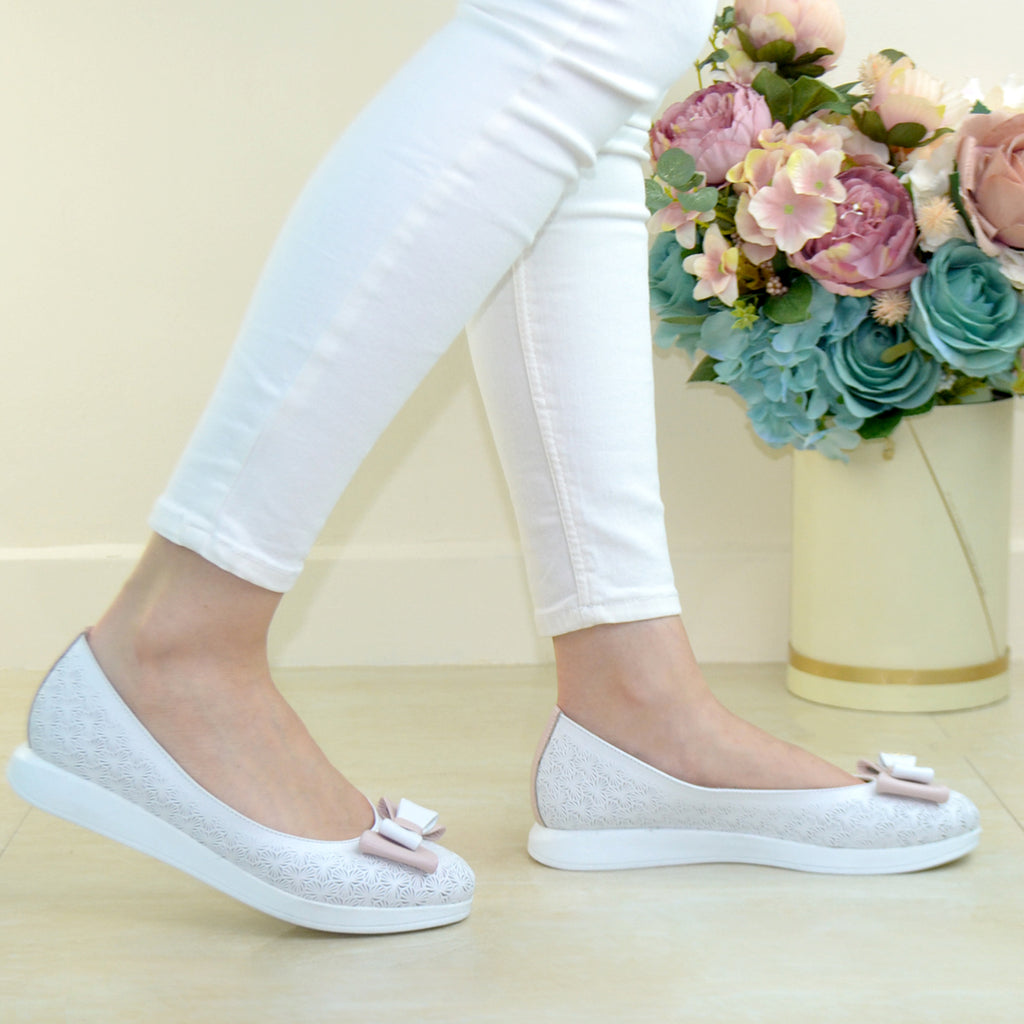Pantofi Dama Piele Naturala Alba Perforata Gabina XXII