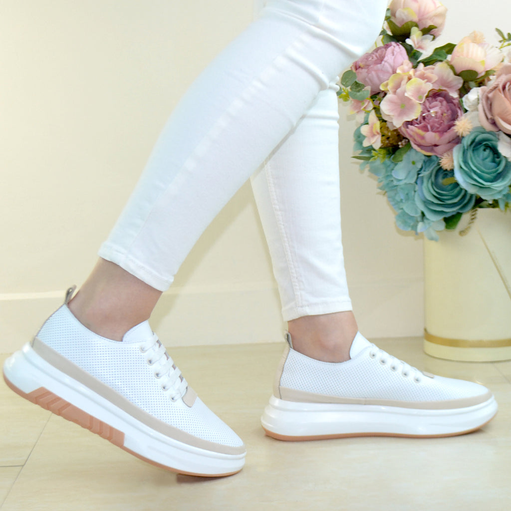 Pantofi Sport Piele Naturala Alba Gabina 934