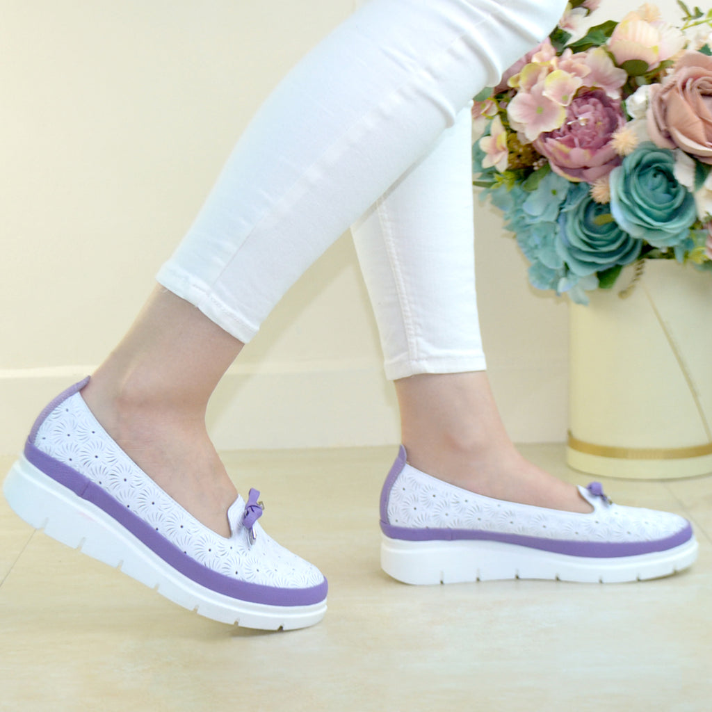 Balerini Piele Naturala Alb cu Mov Gabriela 1075-6