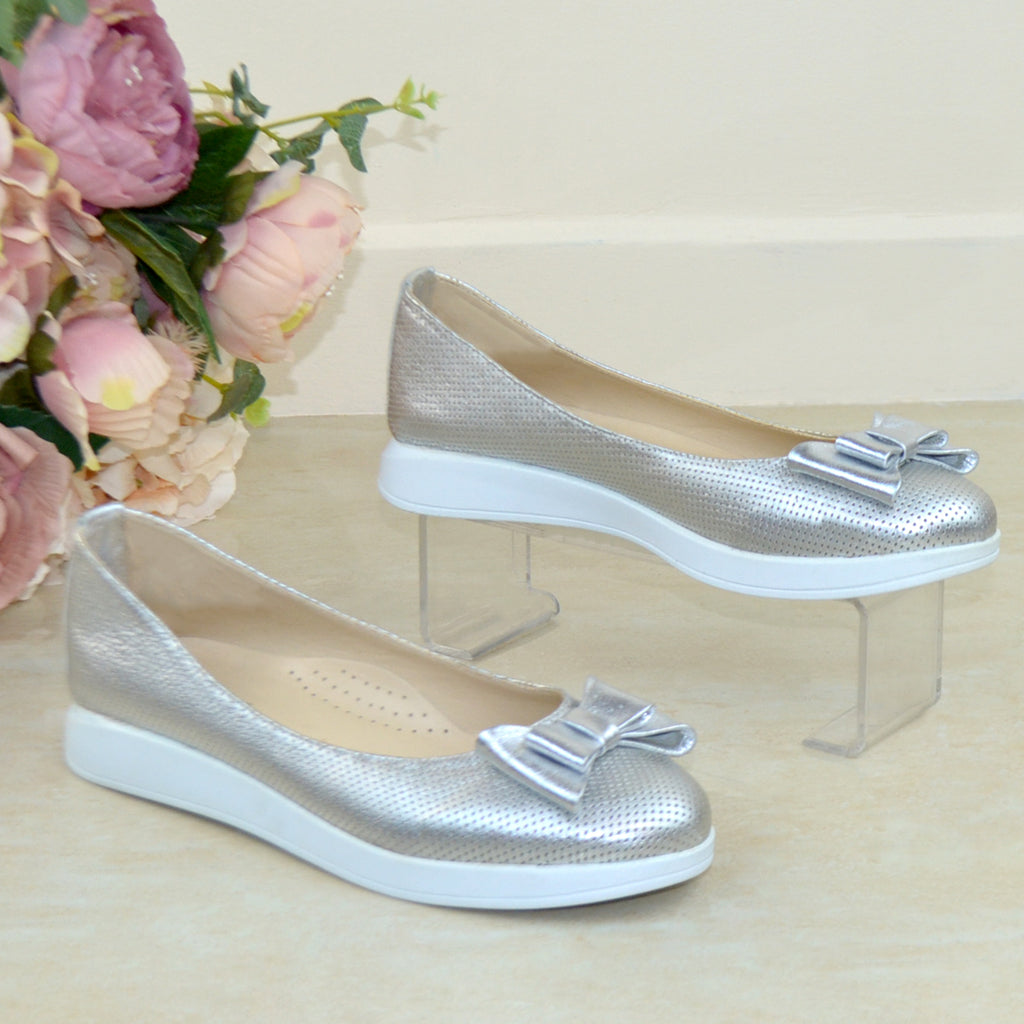Balerini Piele Naturala Argintie Gabriela 1069