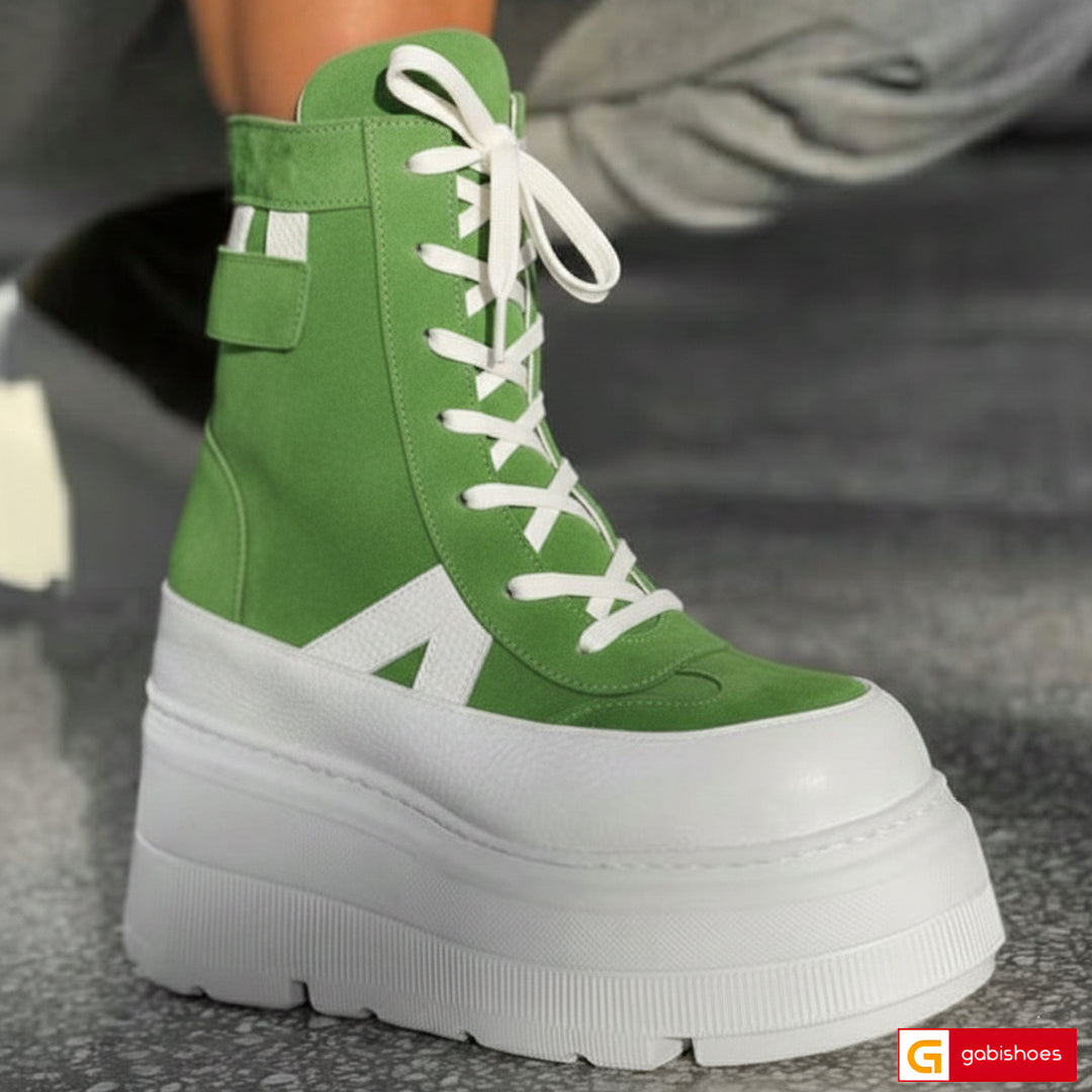 Ghete Sport Dama Piele Naturala Verde cu Taupe Lorena 4110-7 NEW