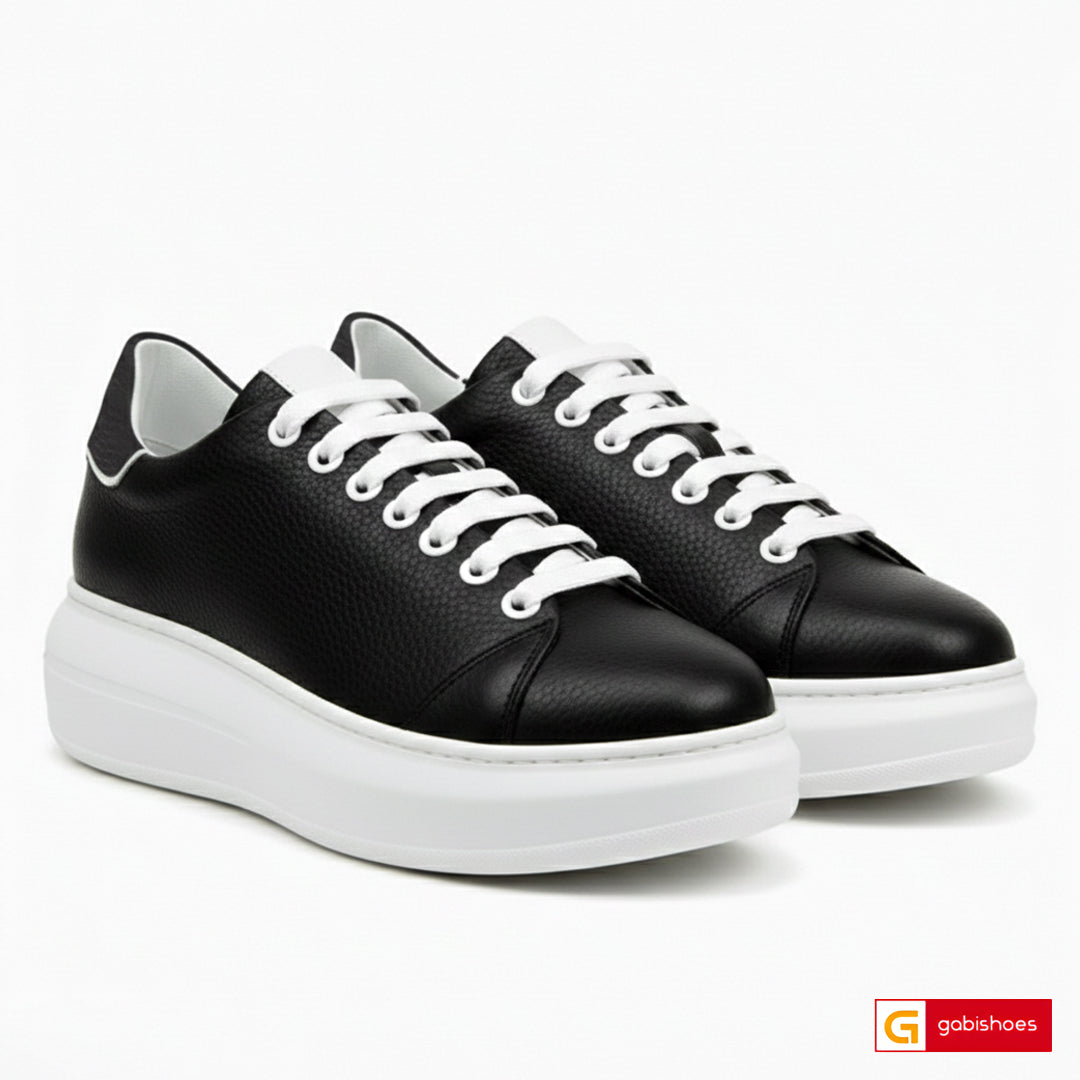Caracteristici Pantofi sport piele naturala alba cu piele naturala neagra