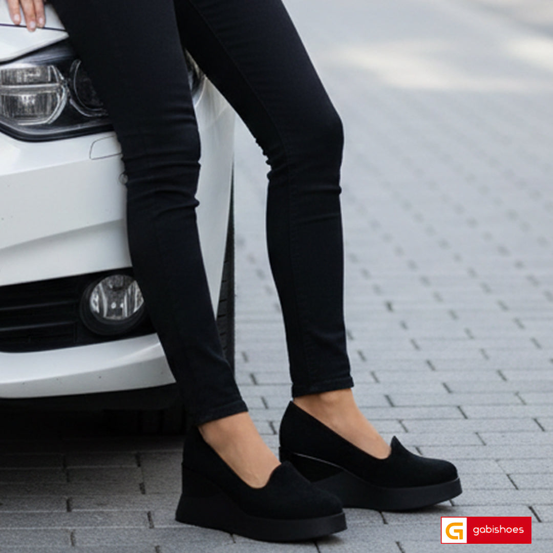 Pantofi Dama Piele Naturala Intoarsa Neagra Sandy 1537-8