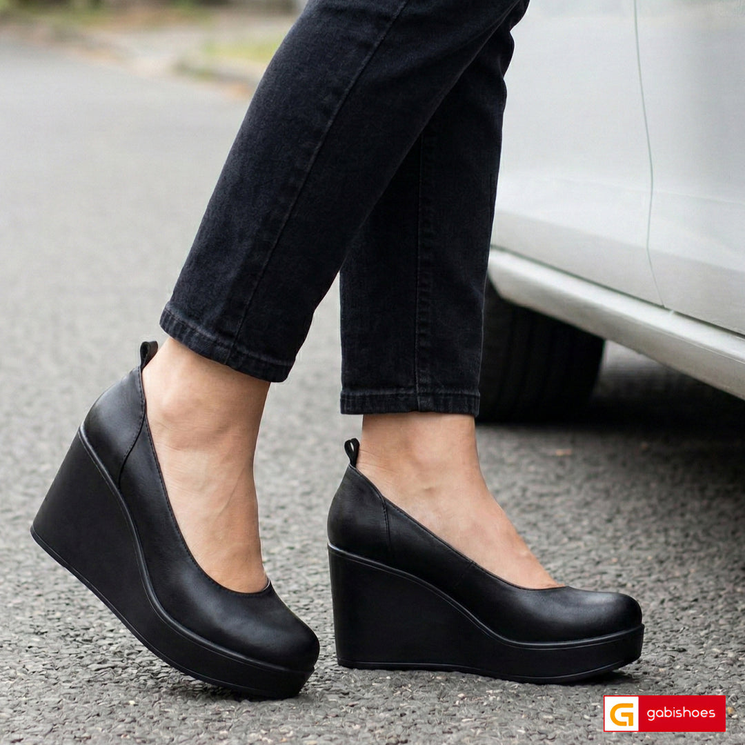 - Talpa neagra , varf rotunt, brant interior cu burete special , mesina naturala bej - Inaltime talpa : 8,5 cm spate si 2,5 cm fata , talpa usoara , calapod comod