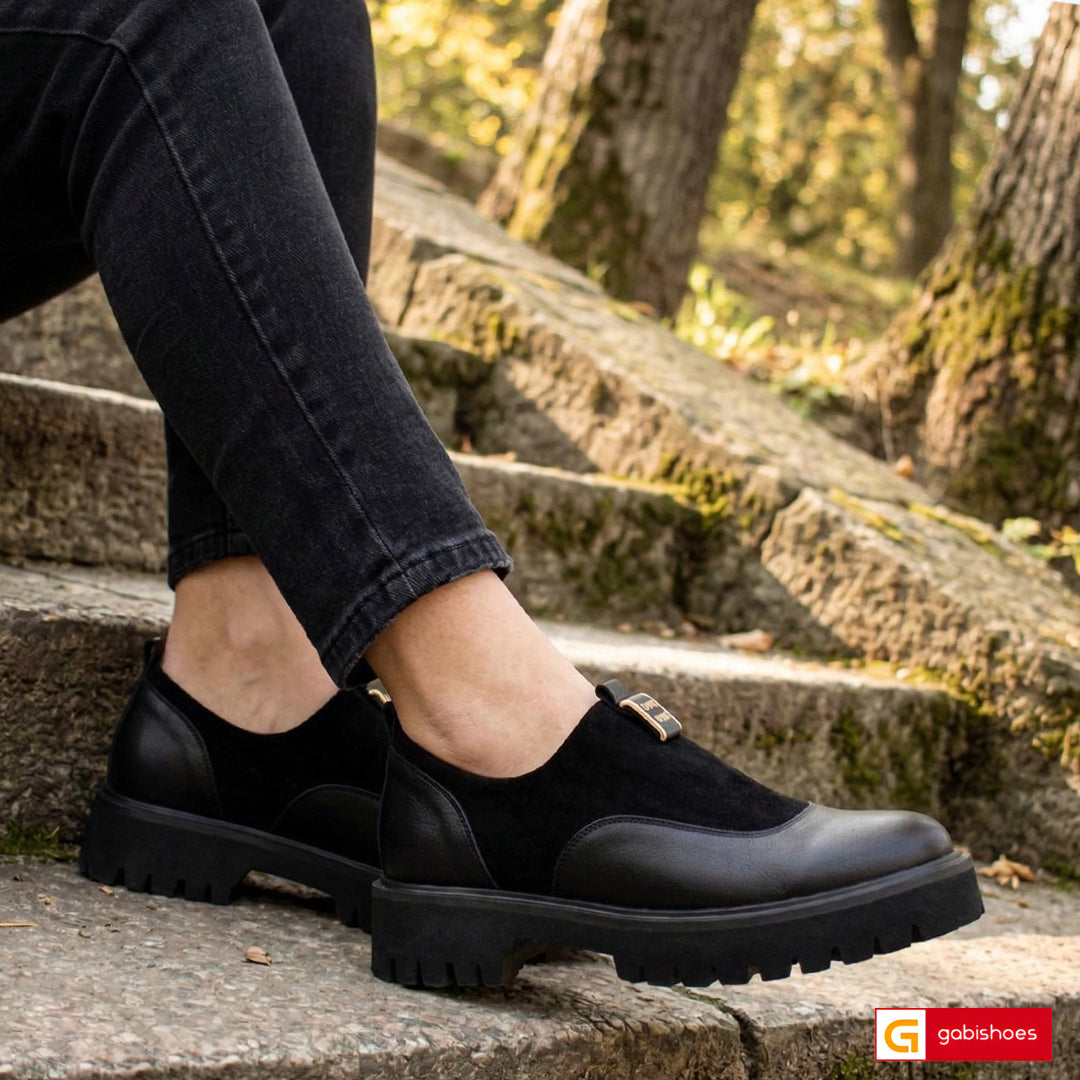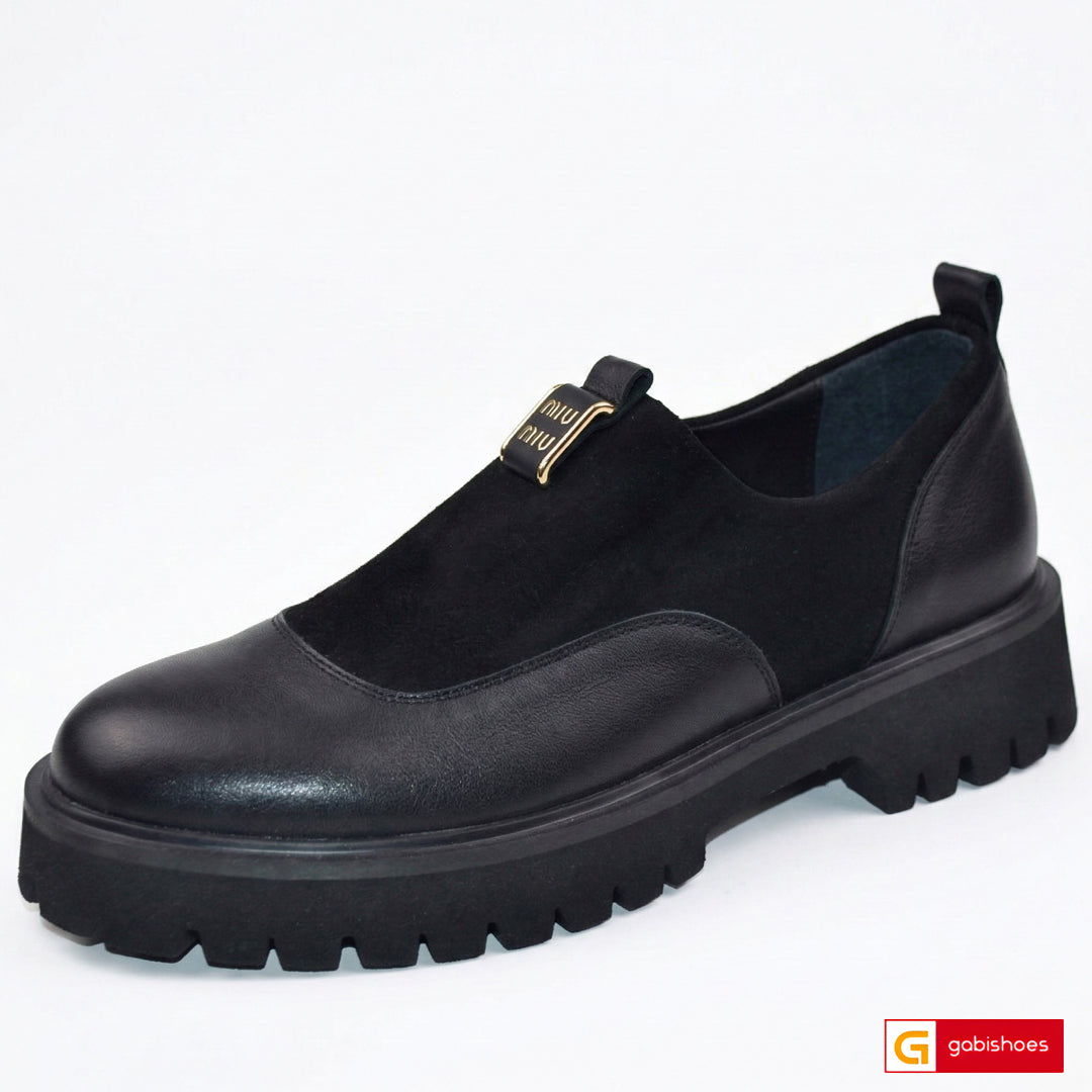 - Pantofi piele naturala naturala neagra si material negru strechi