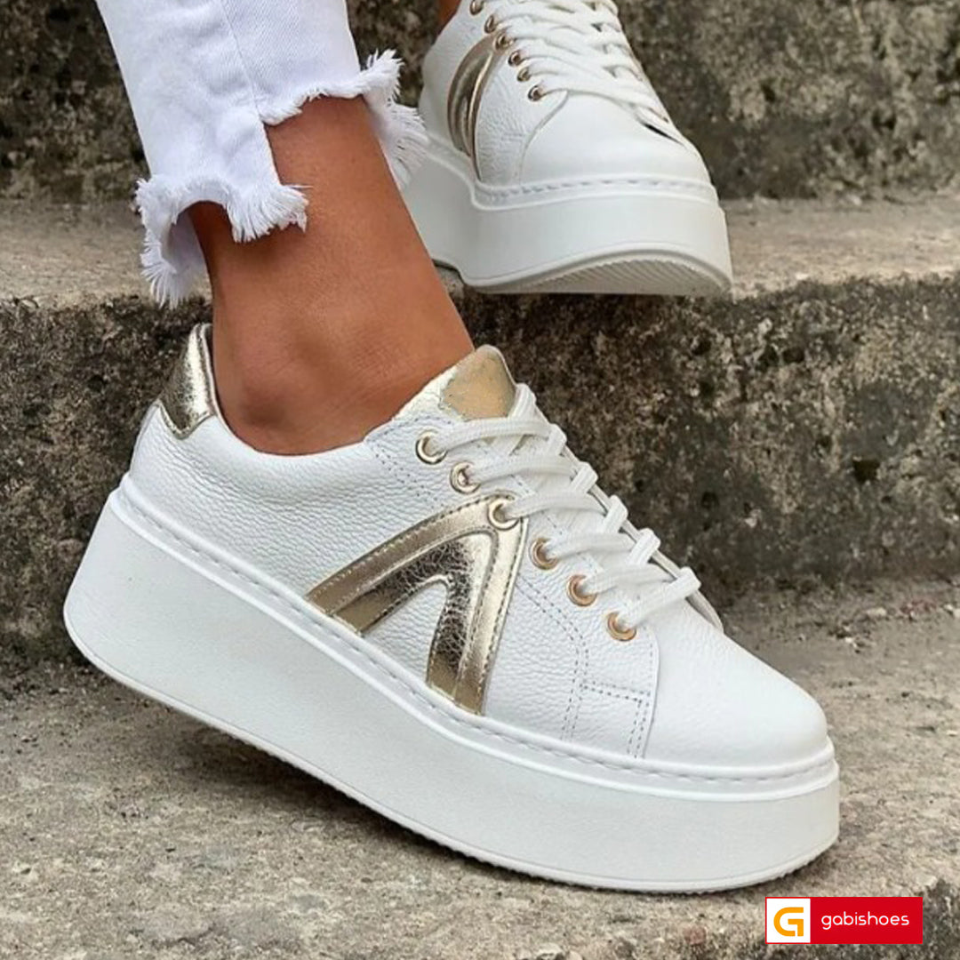 Cumparand acesti pantofi adidasi puteti iesii in evidenta in orice imprejurime ! Pantofi Sport Dama Piele Naturala Alb cu Auriu Lorena 3868-3 ,Pantofii sport din piele naturala sunt produsi in Romania de catre producatorul Gabi Shoes