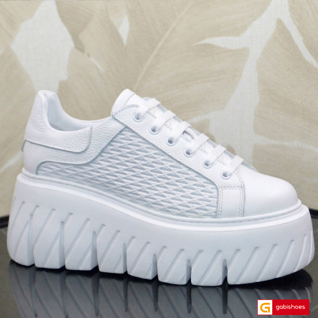 Caracteristici Pantofi sport piele naturala alba si cu model gaurele speciale