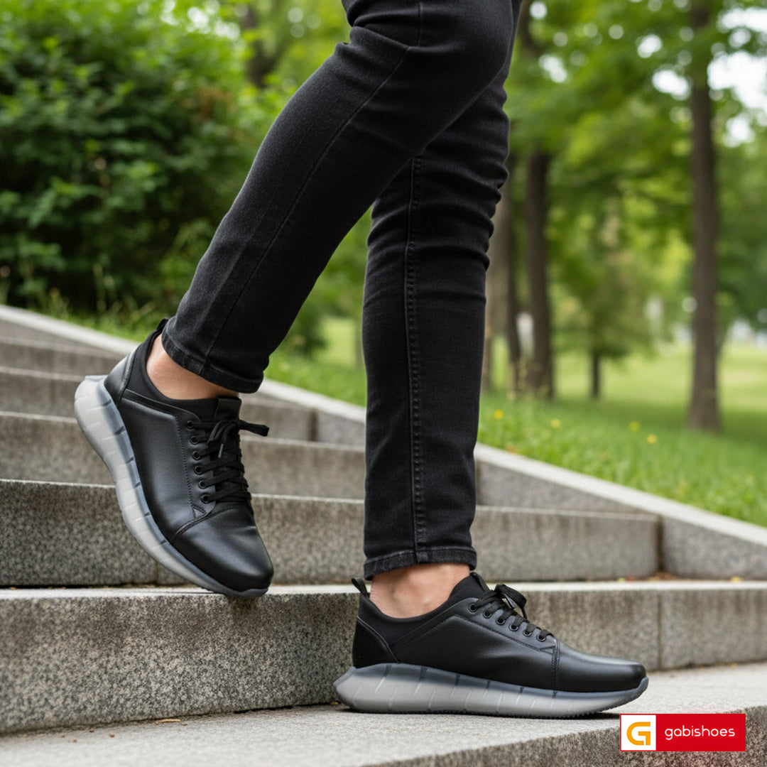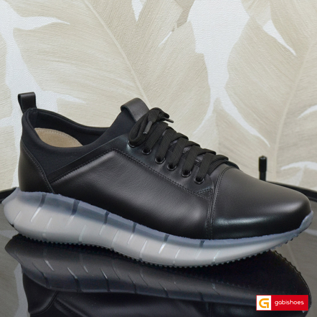 Caracteristici Pantofi sport piele naturala neagra si material strech negru