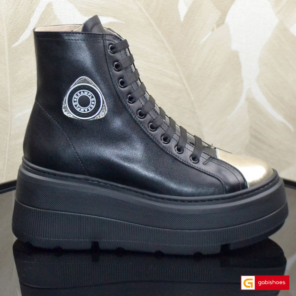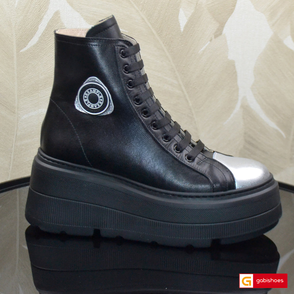 Ghete Sport Dama Piele Naturala Negru cu Argintiu Lorena 3517-4