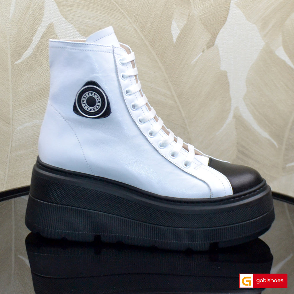 Ghete Sport Dama Piele Naturala Alb cu Negru Lorena 3517-5
