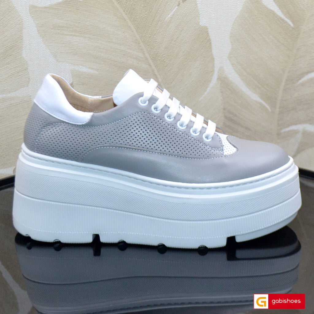 Pantofi Sport Piele Naturala Alb cu Gri Lorena 3429-1