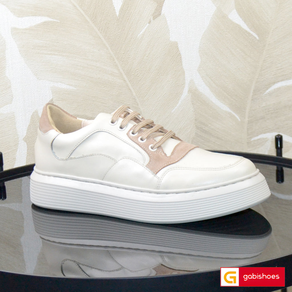 Pantofi Sport Piele Naturala Bej cu Taupe Gabinna 3126-2