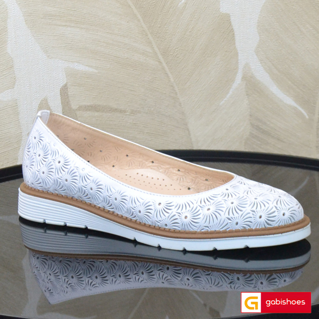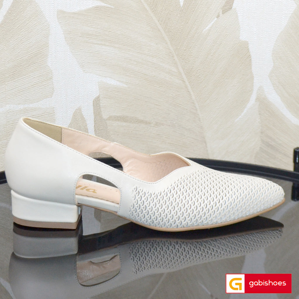 Balerini Piele Naturala Alba Perforata Gabriela 3242-2