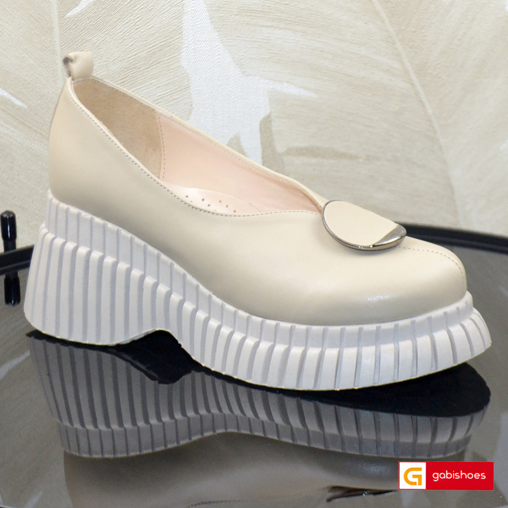 Pantofi Sport Piele Naturala Bej cu Alb Gabinna 3363-1