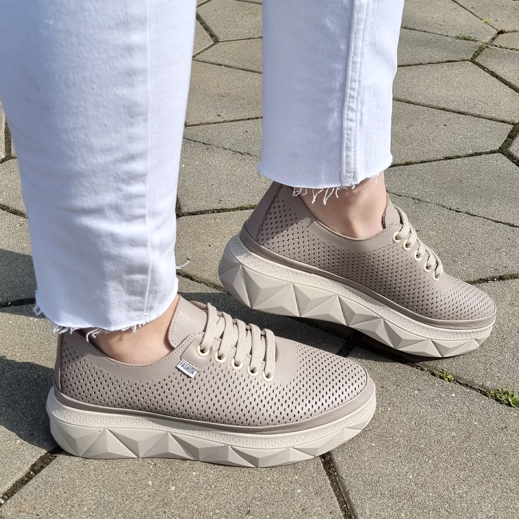Pantofi Sport Piele Naturala Taupe Gabinna 3364-1