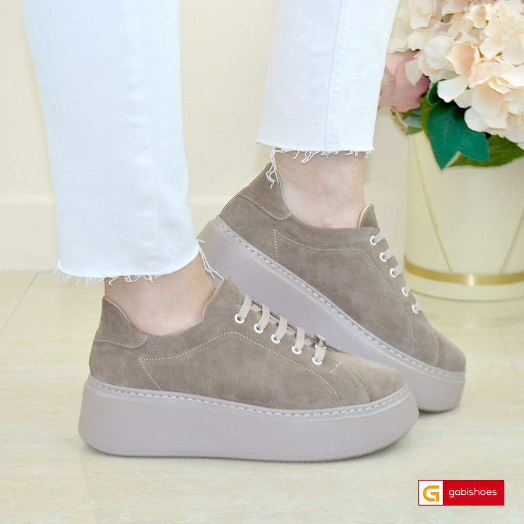 Pantofi Sport Piele Naturala Intoarsa Taupe Gabinna 3253-12
