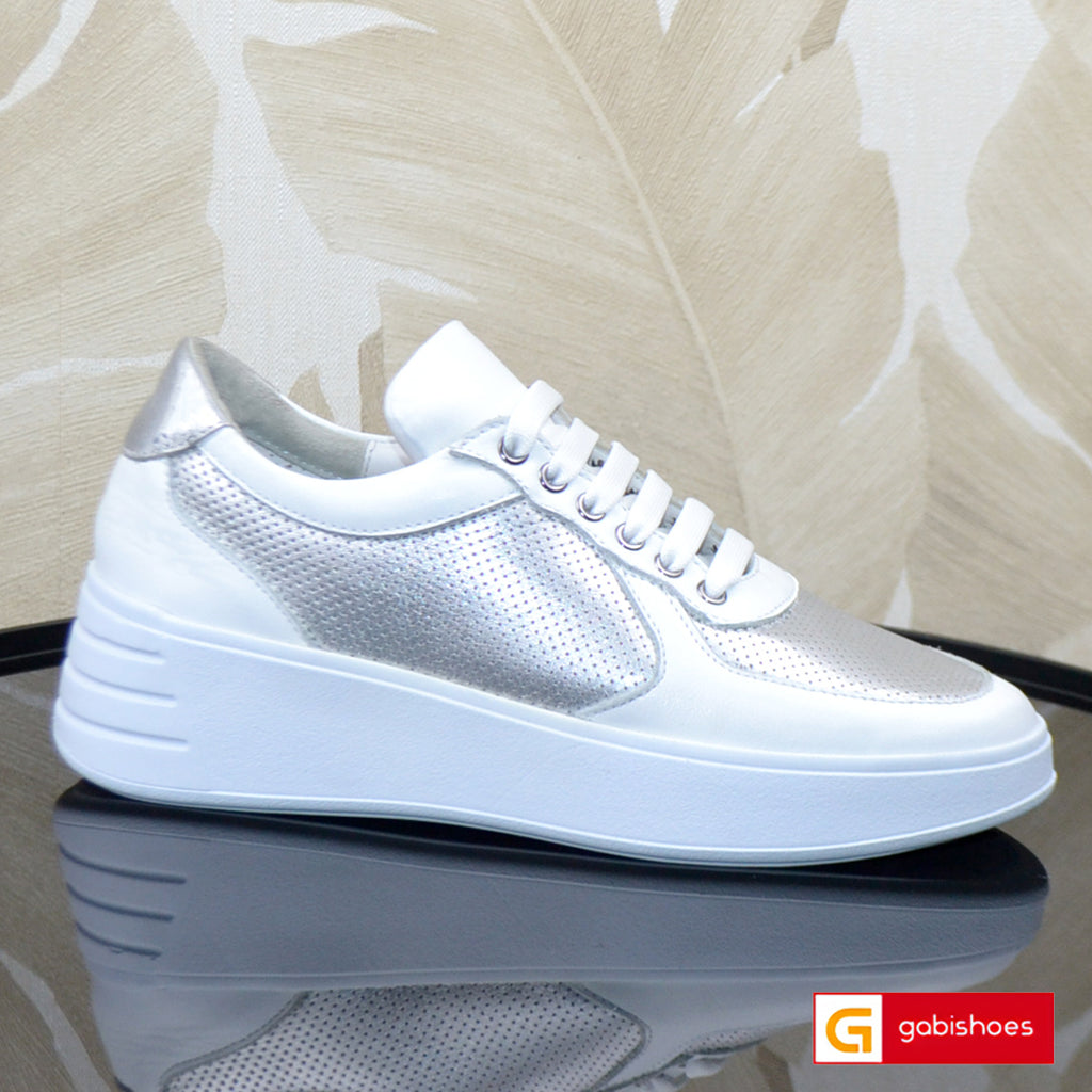 Pantofi Sport Piele Naturala Alb cu Argintiu Lorena XI