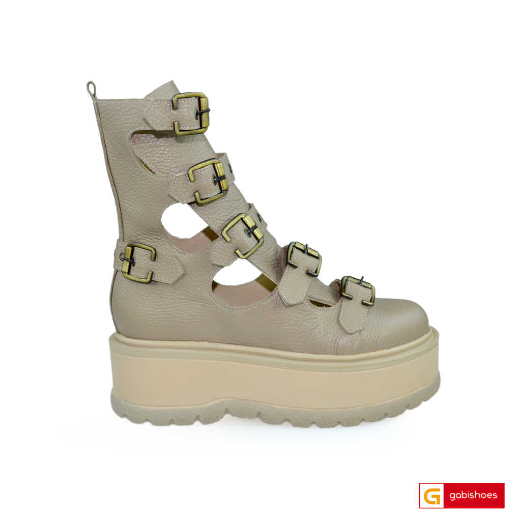 Ghete Perforate Piele Naturala Bej Mara XVII