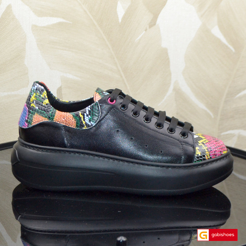 Papuci Dama Piele Naturala Negru cu Print Gabinna 3805-10