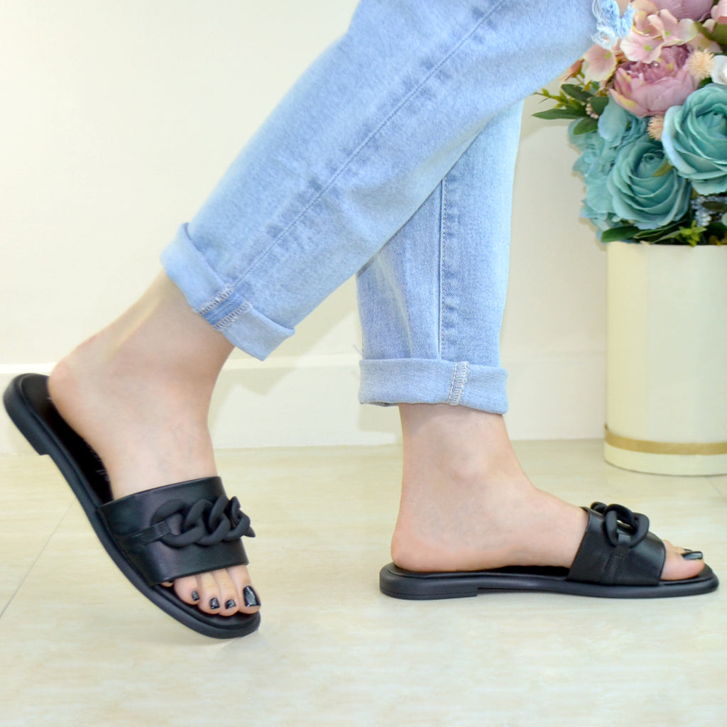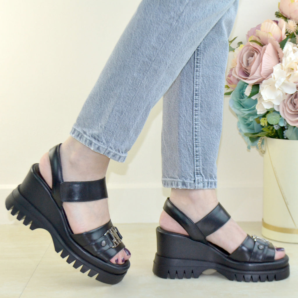 Sandale Casual Piele Naturala Neagra Lorena 500