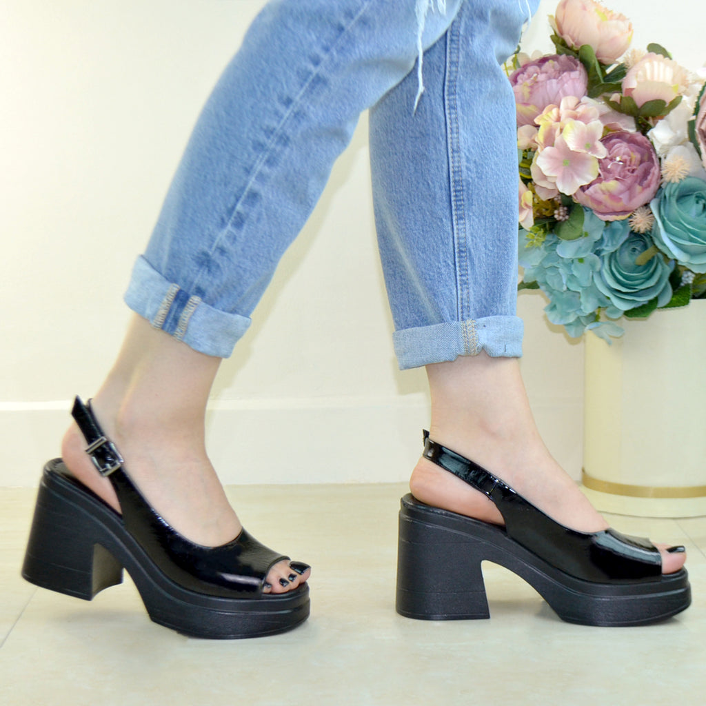 Sandale Dama Piele Naturala Negru Lac Gabina 940