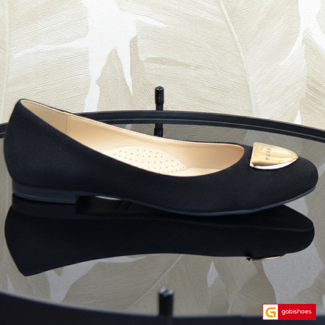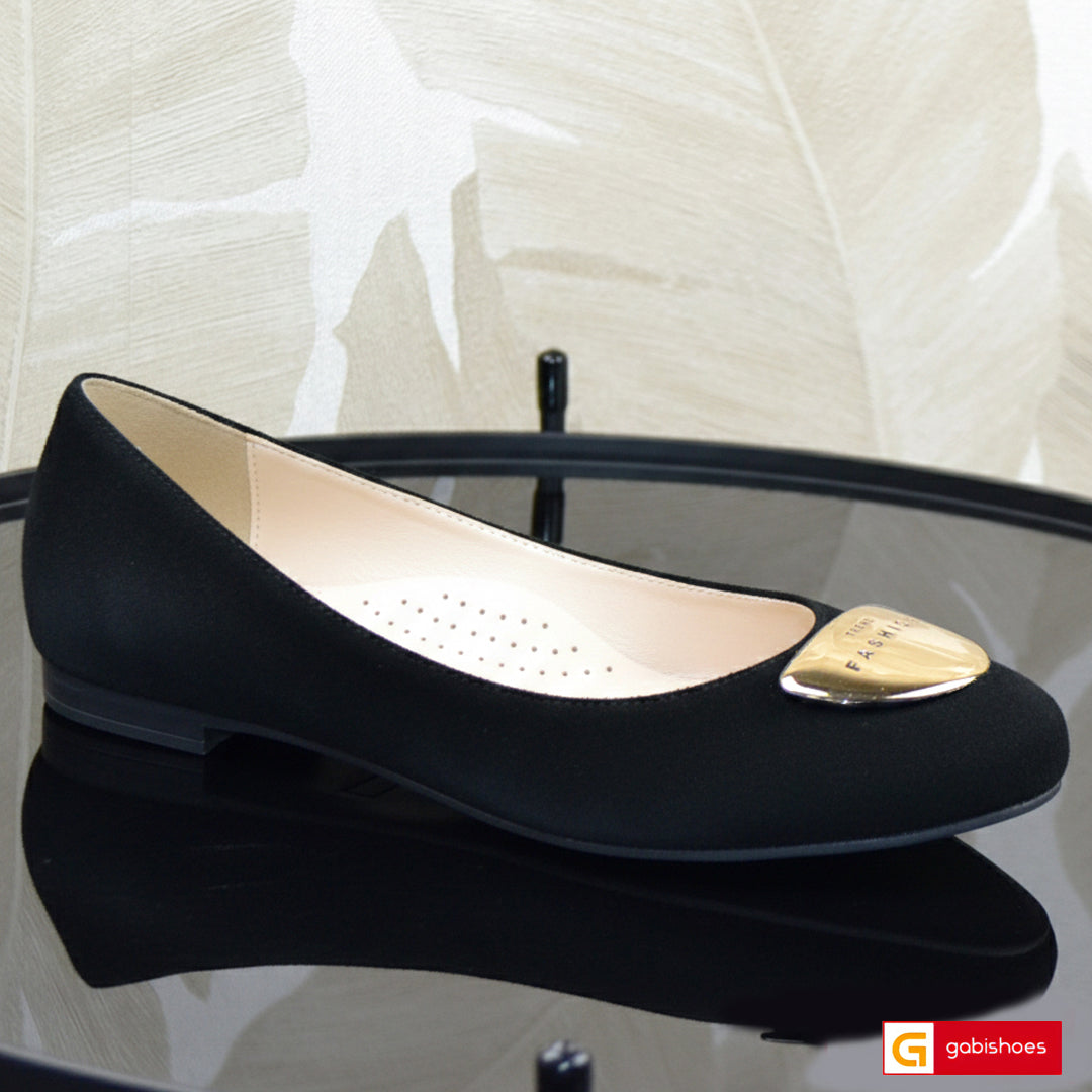 - Pantofi piele naturala intoarsa neagra cu ornament auriu spacial