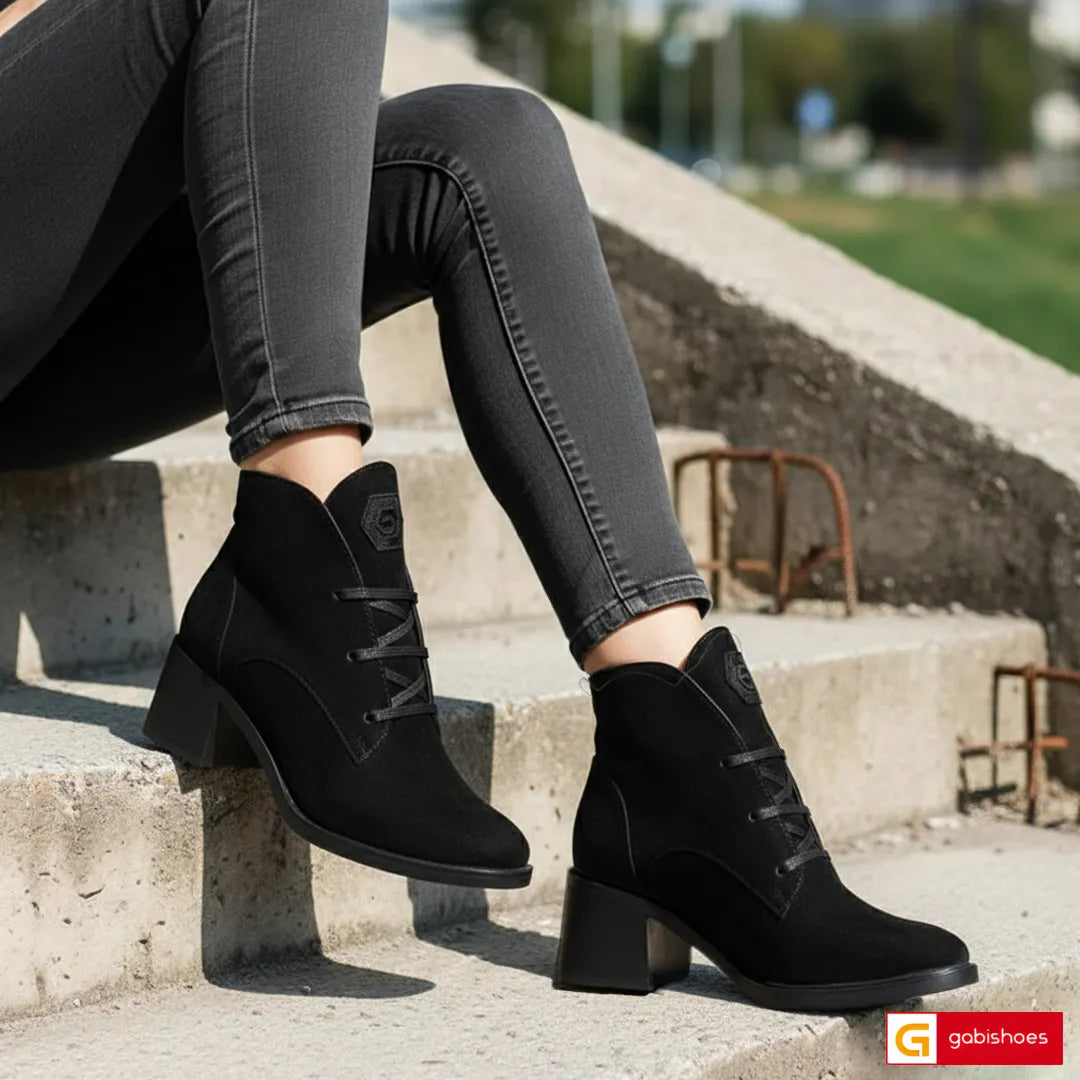 Ghete Piele Naturala Intoarsa Neagra Lorena 4015-2
