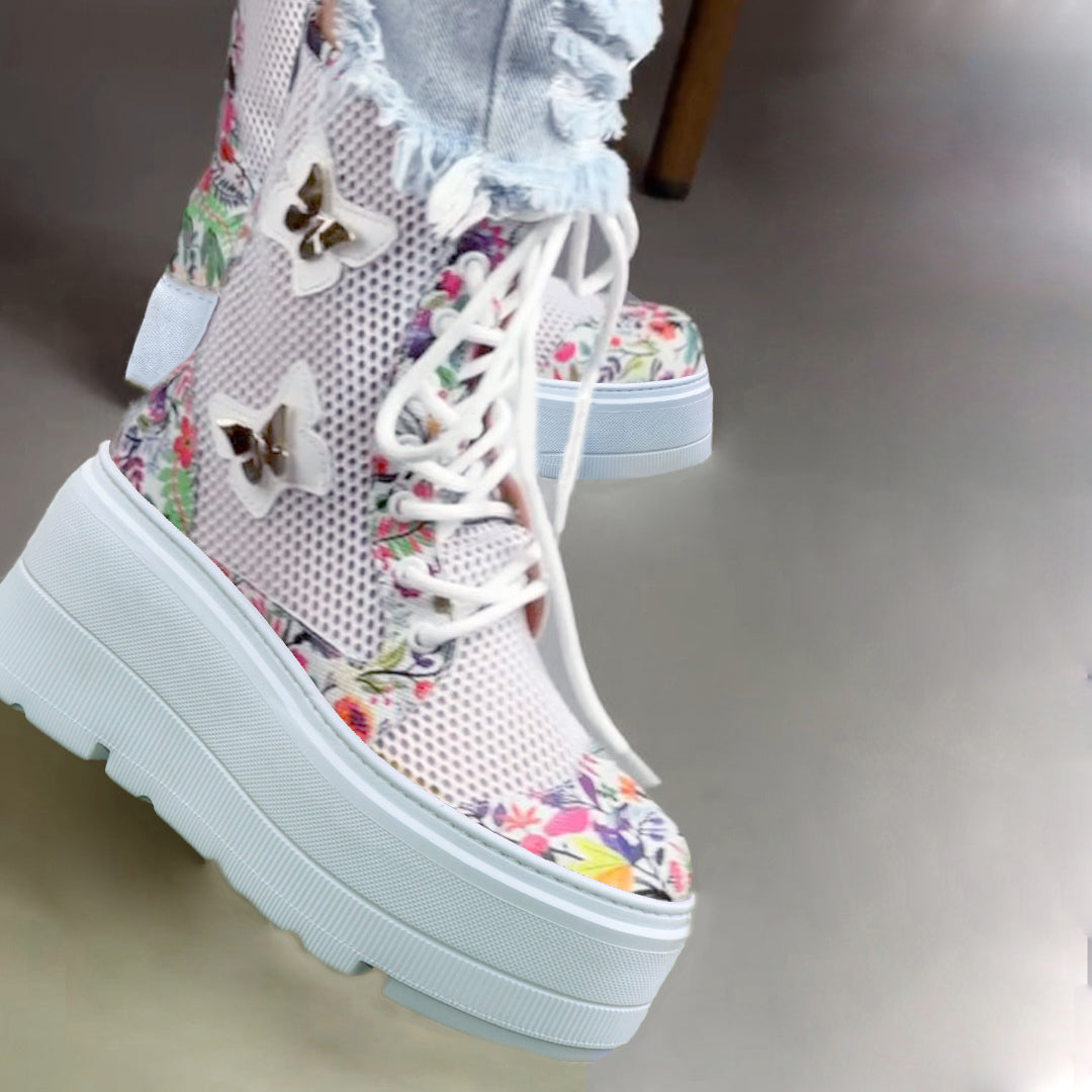Caracteristici Ghetele sport piele naturala alb cu multicolor si material din panza alba