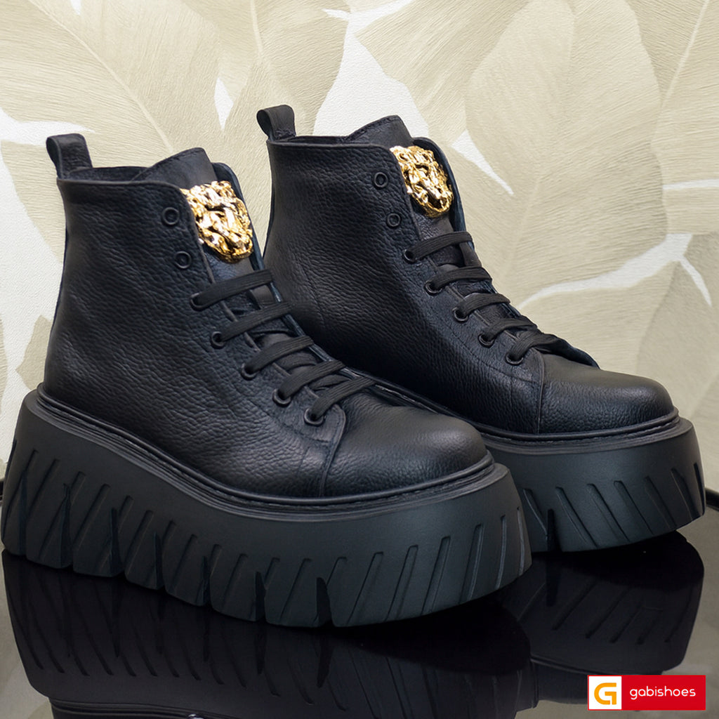 - Pantofi piele naturala negru lucios , pantofi cu ornament argintiu