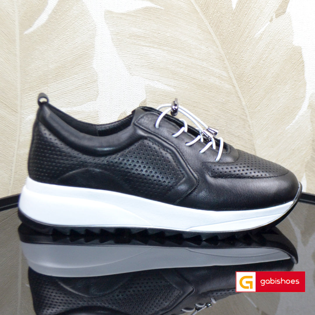 - Pantofi piele naturala neagra cu model ,sistem de inchidere cu siret elastic